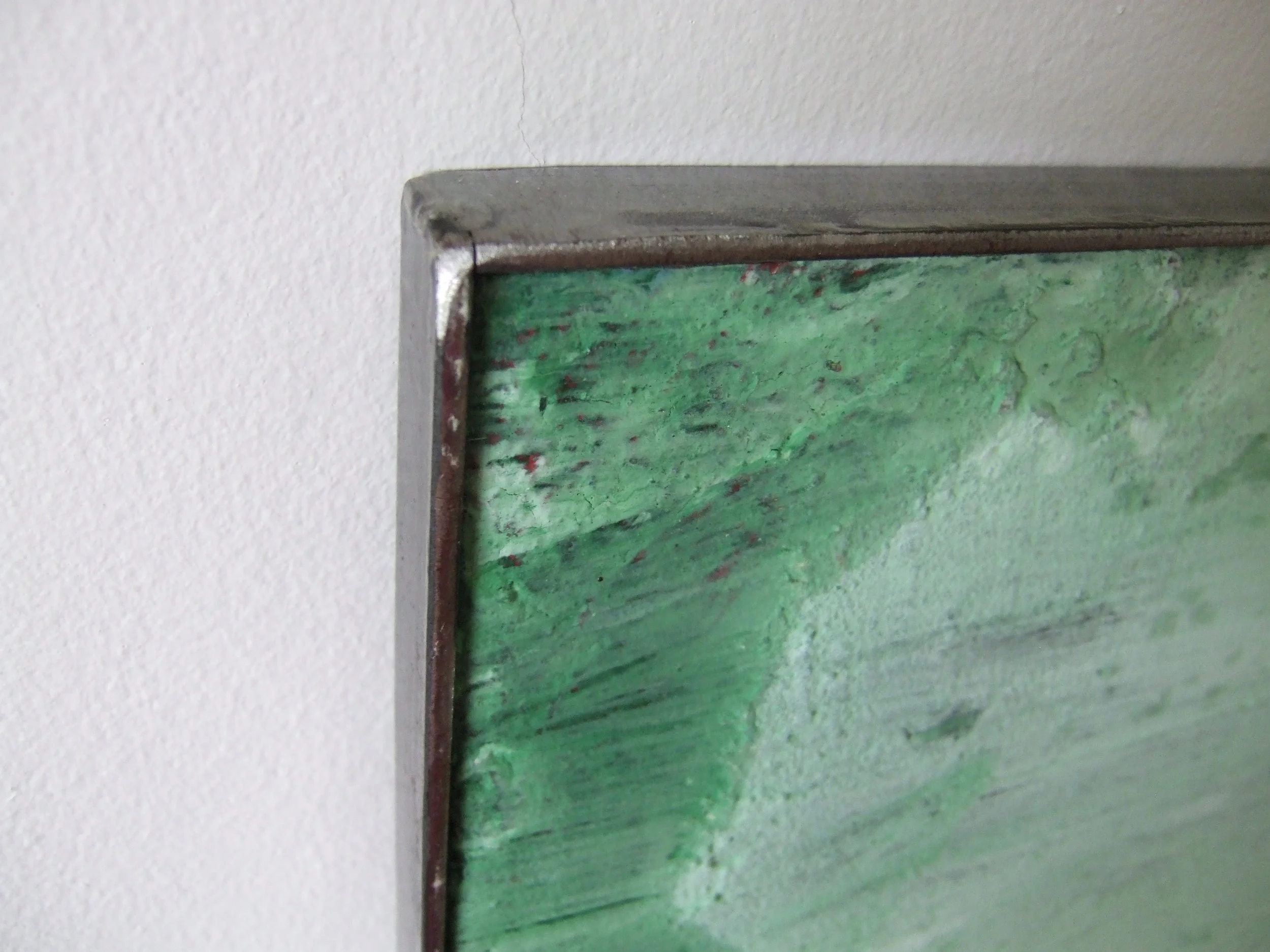 Recent paintings are enhanced by the bespoke metal frames created by Thierry Millet, metal artist and owner of MetalSpirit, Nançay, France (see image).